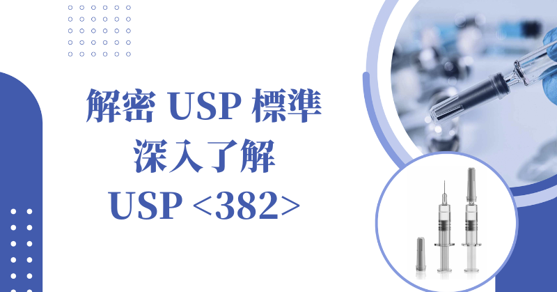 USP <382> 是美國藥典針對注射劑包裝系統中彈性體元件(如瓶塞、活塞、封蓋)的功能性測試標準。不同於過去舊版標準只針對單一彈性材料進行測試,USP <382>採取更全面的系統性評估方式,強調這些彈性體元件與容器本體(如注射器、藥瓶、藥筒)結合後的整體表現與功能性。
