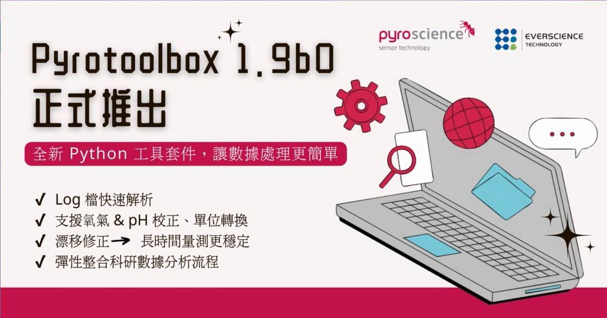 我們已將全新釋出的 pyrotoolbox 1.9b0 版本資訊,第一時間通知給所有使用 PyroScience 設備的客戶。