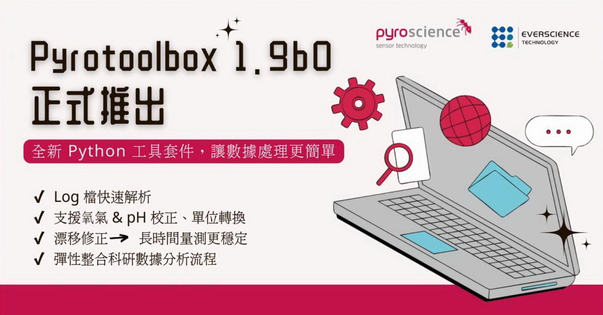 我們已將全新釋出的 pyrotoolbox 1.9b0 版本資訊,第一時間通知給所有使用 PyroScience 設備的客戶。
